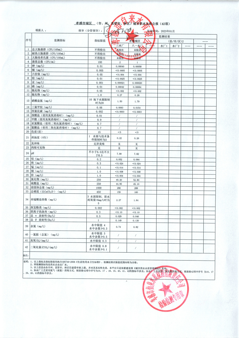 2023年1月水质报告
