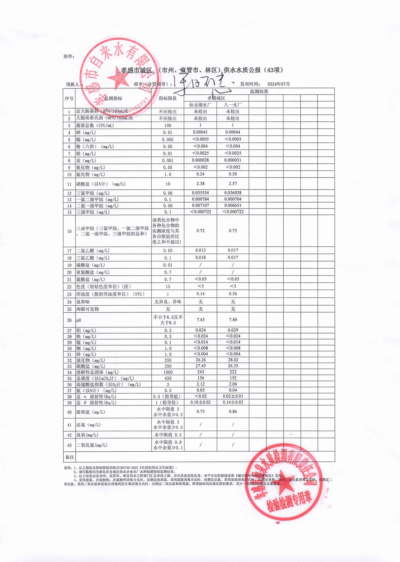 2024年7月水质报告
