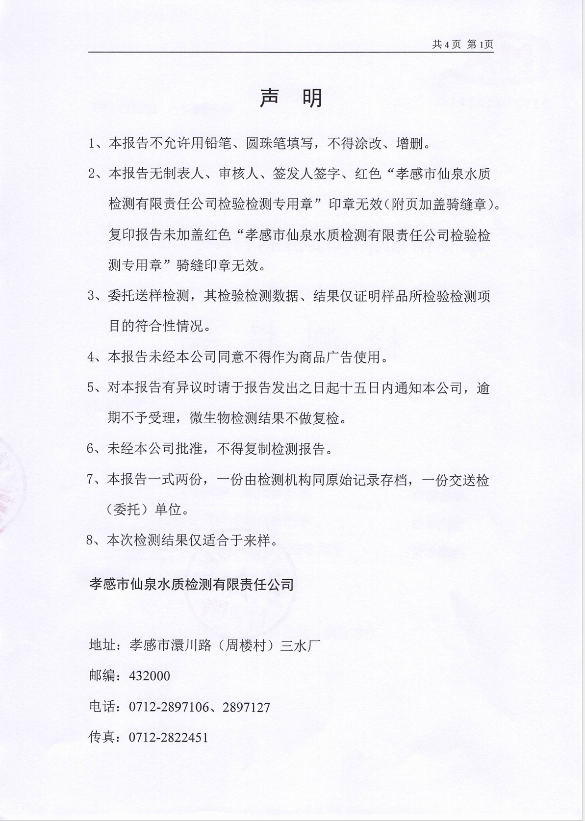管网水水质公告