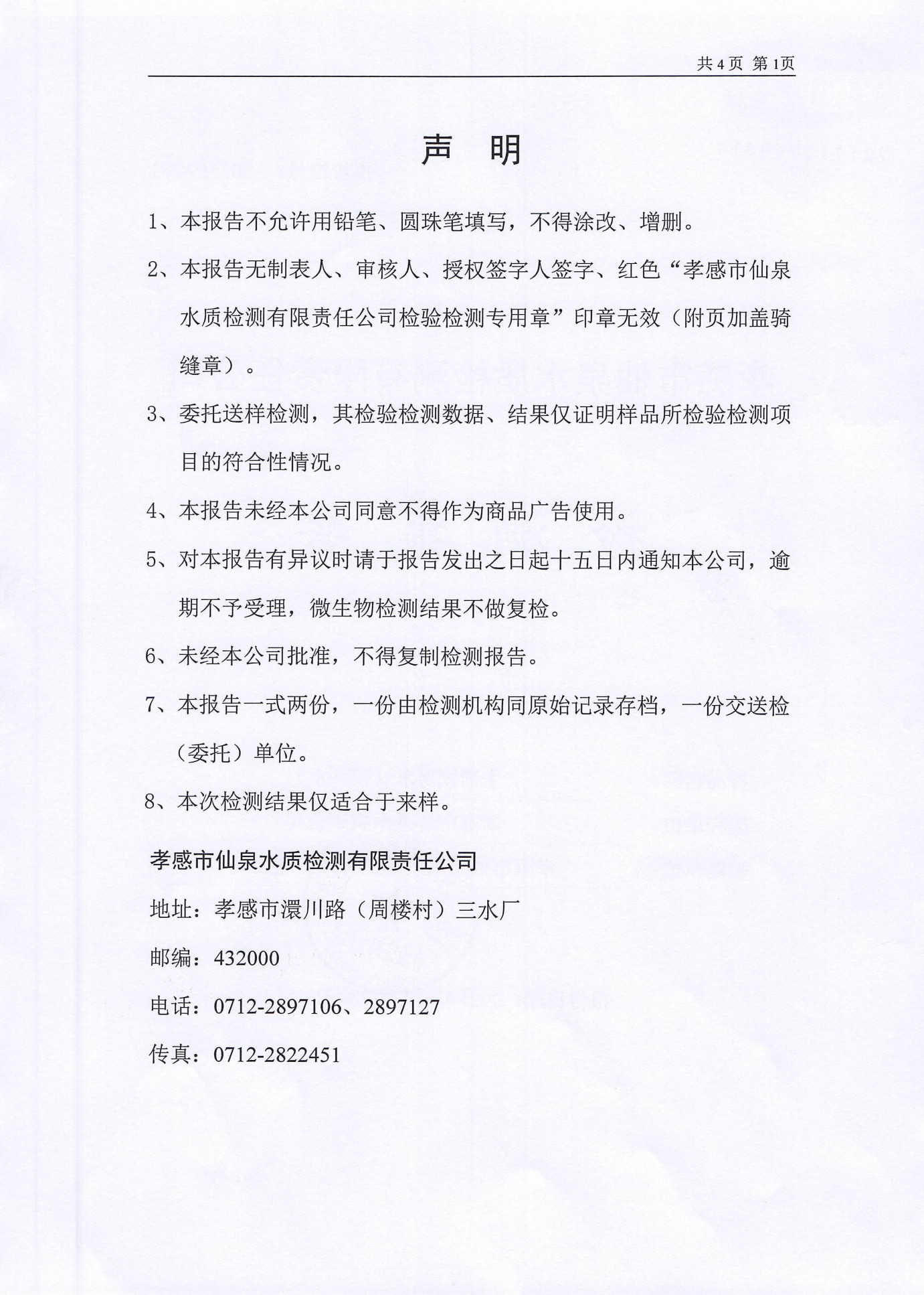 管网水水质公告