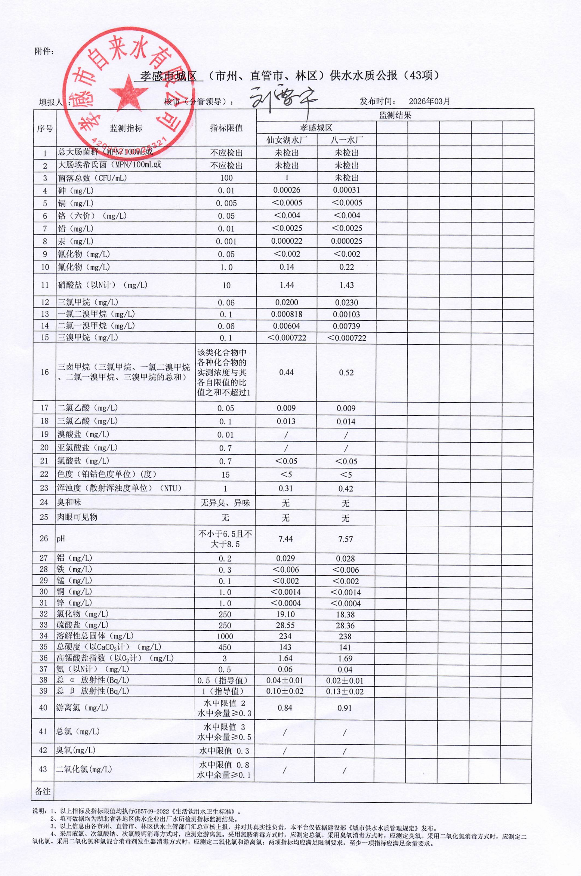 2026年3月水质报告